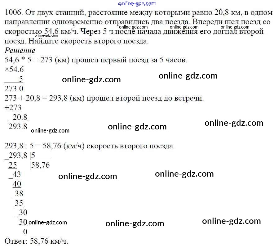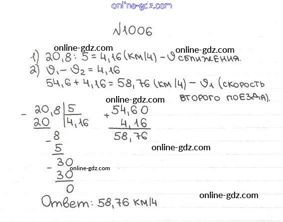 Готовые домашние задания по Математике за 5 класс Учебник Мерзляк, Полонский Алгоритм успеха 2016 - §35. Деление десятичных дробей Глава 5. Десятичные дроби 1006