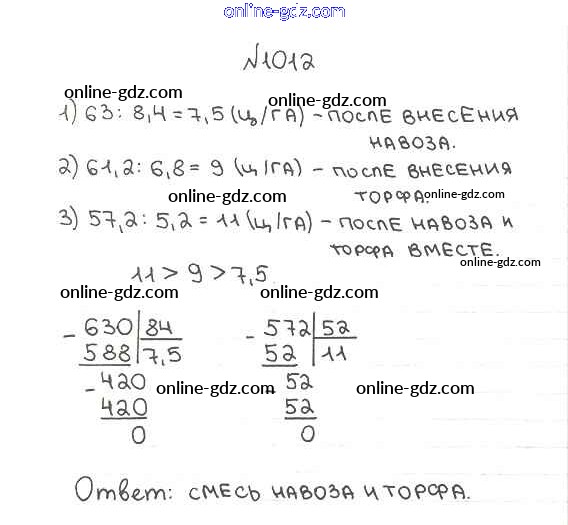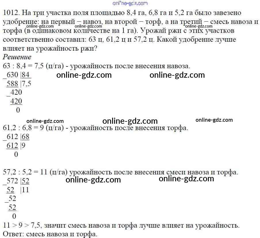 Готовые домашние задания по Математике за 5 класс Учебник Мерзляк, Полонский Алгоритм успеха 2016 - §35. Деление десятичных дробей Глава 5. Десятичные дроби 1012