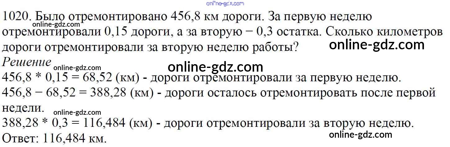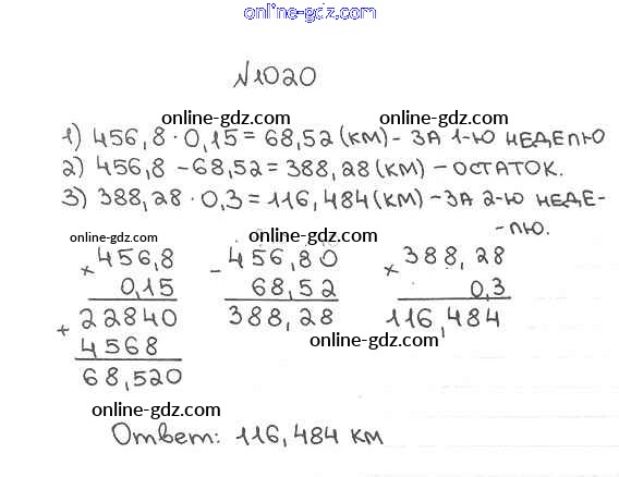 Готовые домашние задания по Математике за 5 класс Учебник Мерзляк, Полонский Алгоритм успеха 2016 - §35. Деление десятичных дробей Глава 5. Десятичные дроби 1020