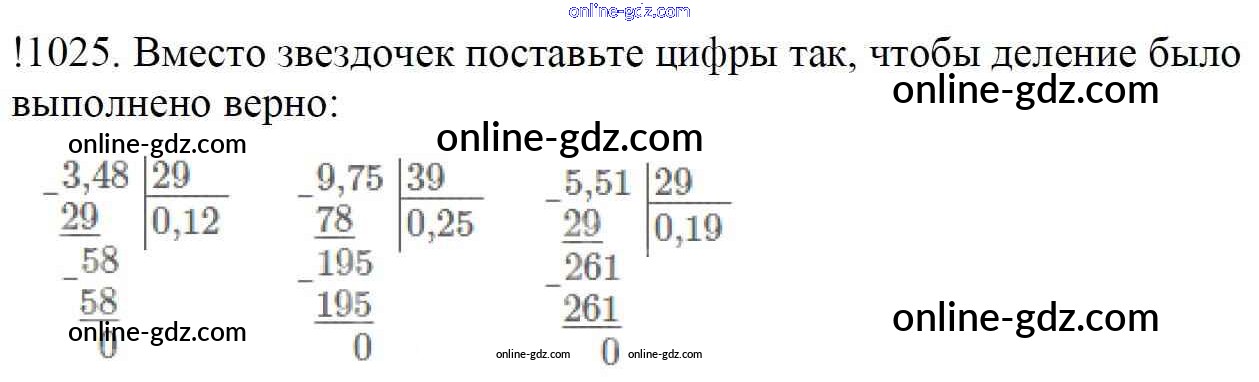 Готовые домашние задания по Математике за 5 класс Учебник Мерзляк, Полонский Алгоритм успеха 2016 - §35. Деление десятичных дробей Глава 5. Десятичные дроби 1025