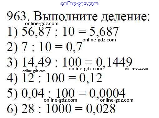 Готовые домашние задания по Математике за 5 класс Учебник Мерзляк, Полонский Алгоритм успеха 2016 - §35. Деление десятичных дробей Глава 5. Десятичные дроби 963