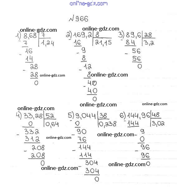 Готовые домашние задания по Математике за 5 класс Учебник Мерзляк, Полонский Алгоритм успеха 2016 - §35. Деление десятичных дробей Глава 5. Десятичные дроби 966