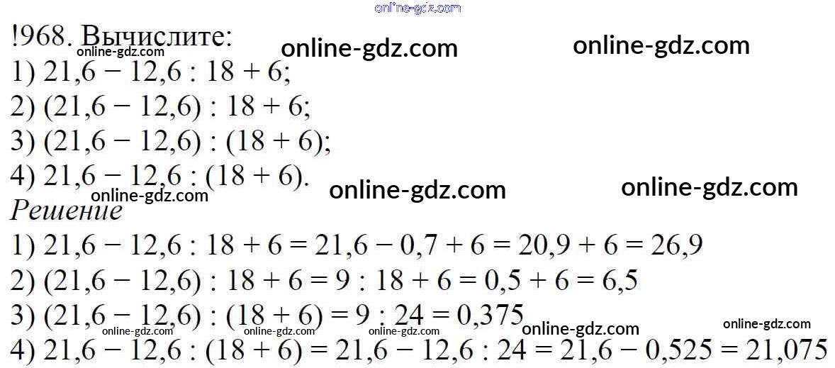 Готовые домашние задания по Математике за 5 класс Учебник Мерзляк, Полонский Алгоритм успеха 2016 - §35. Деление десятичных дробей Глава 5. Десятичные дроби 968