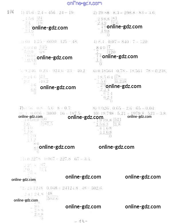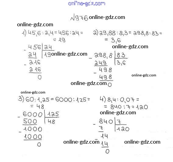 Готовые домашние задания по Математике за 5 класс Учебник Мерзляк, Полонский Алгоритм успеха 2016 - §35. Деление десятичных дробей Глава 5. Десятичные дроби 976