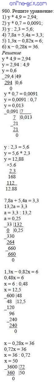 Готовые домашние задания по Математике за 5 класс Учебник Мерзляк, Полонский Алгоритм успеха 2016 - §35. Деление десятичных дробей Глава 5. Десятичные дроби 980