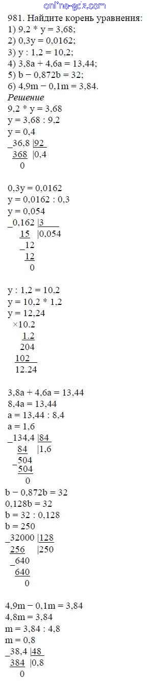 Готовые домашние задания по Математике за 5 класс Учебник Мерзляк, Полонский Алгоритм успеха 2016 - §35. Деление десятичных дробей Глава 5. Десятичные дроби 981