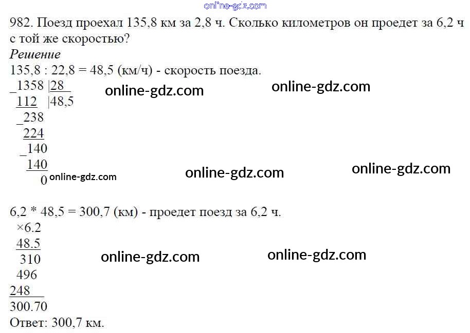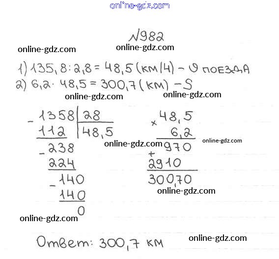 Готовые домашние задания по Математике за 5 класс Учебник Мерзляк, Полонский Алгоритм успеха 2016 - §35. Деление десятичных дробей Глава 5. Десятичные дроби 982