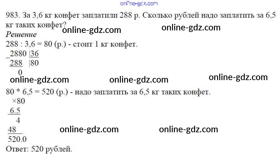 Готовые домашние задания по Математике за 5 класс Учебник Мерзляк, Полонский Алгоритм успеха 2016 - §35. Деление десятичных дробей Глава 5. Десятичные дроби 983