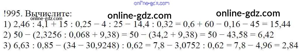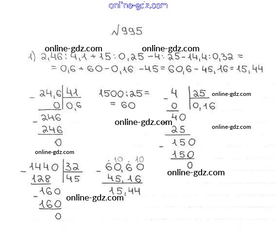 Готовые домашние задания по Математике за 5 класс Учебник Мерзляк, Полонский Алгоритм успеха 2016 - §35. Деление десятичных дробей Глава 5. Десятичные дроби 995