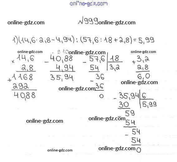 Готовые домашние задания по Математике за 5 класс Учебник Мерзляк, Полонский Алгоритм успеха 2016 - §35. Деление десятичных дробей Глава 5. Десятичные дроби 999
