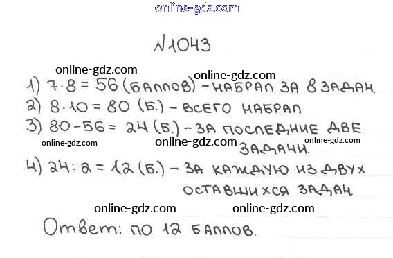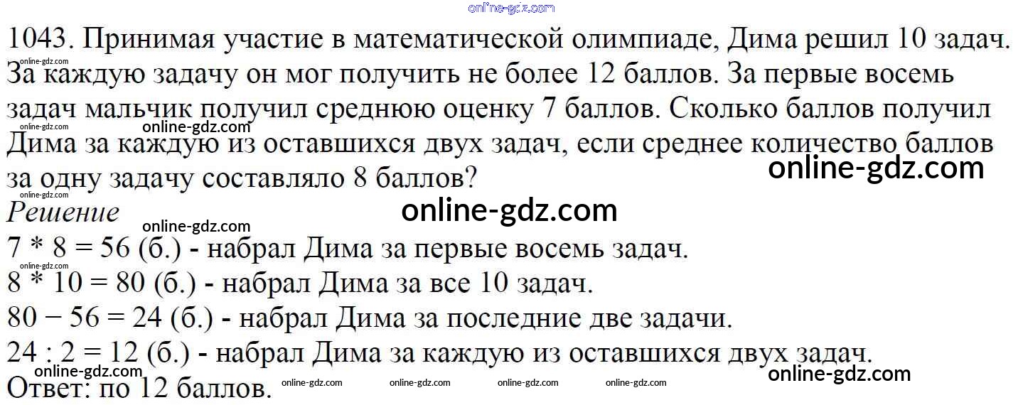 Готовые домашние задания по Математике за 5 класс Учебник Мерзляк, Полонский Алгоритм успеха 2016 - §36. Среднее арифметическое. Среднее значение величины Глава 5. Десятичные дроби 1043