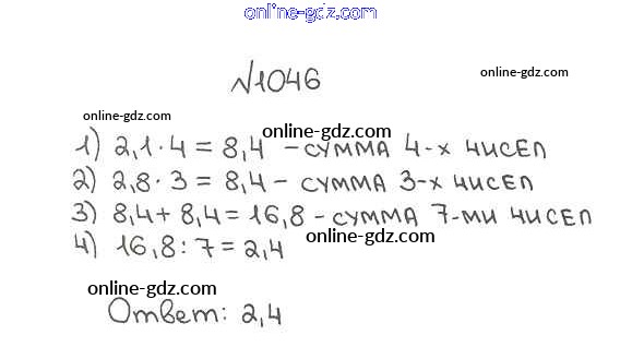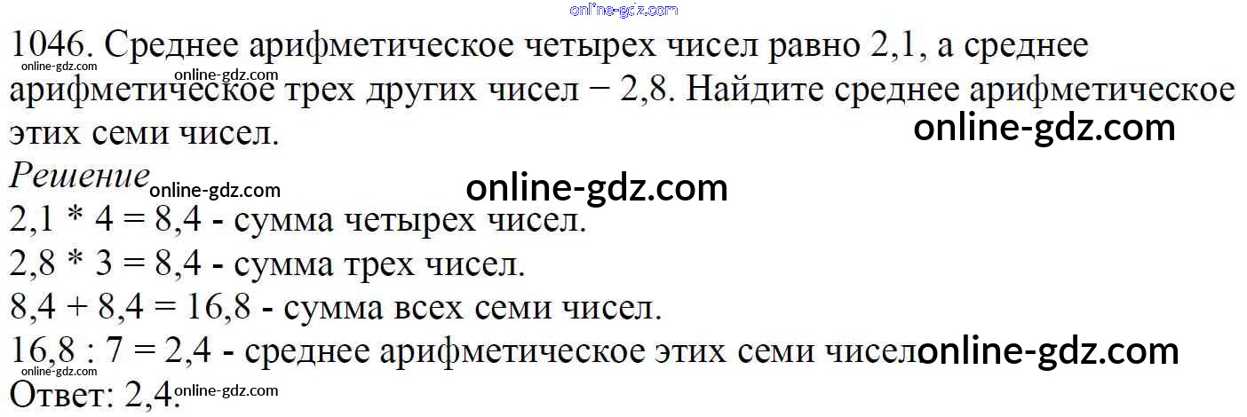 Готовые домашние задания по Математике за 5 класс Учебник Мерзляк, Полонский Алгоритм успеха 2016 - §36. Среднее арифметическое. Среднее значение величины Глава 5. Десятичные дроби 1046