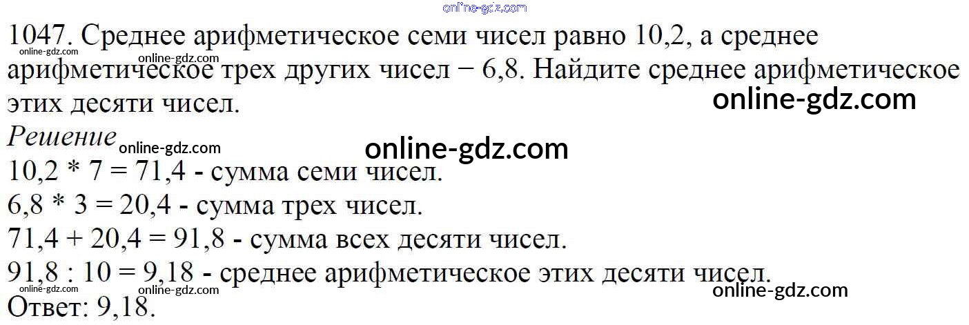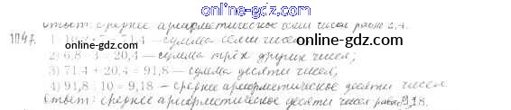 Готовые домашние задания по Математике за 5 класс Учебник Мерзляк, Полонский Алгоритм успеха 2016 - §36. Среднее арифметическое. Среднее значение величины Глава 5. Десятичные дроби 1047