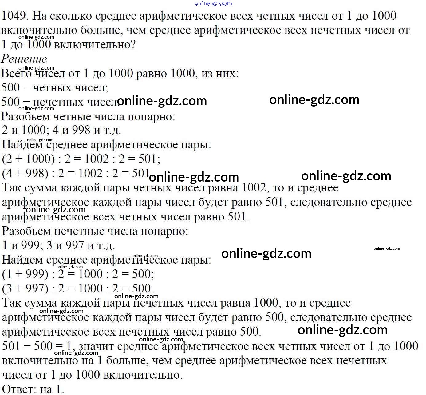 Готовые домашние задания по Математике за 5 класс Учебник Мерзляк, Полонский Алгоритм успеха 2016 - §36. Среднее арифметическое. Среднее значение величины Глава 5. Десятичные дроби 1049