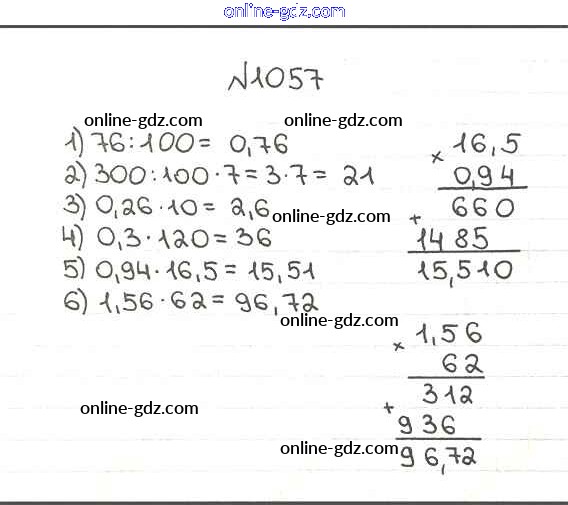 Готовые домашние задания по Математике за 5 класс Учебник Мерзляк, Полонский Алгоритм успеха 2016 - §37. Проценты. Нахождение процентов от числа Глава 5. Десятичные дроби 1057