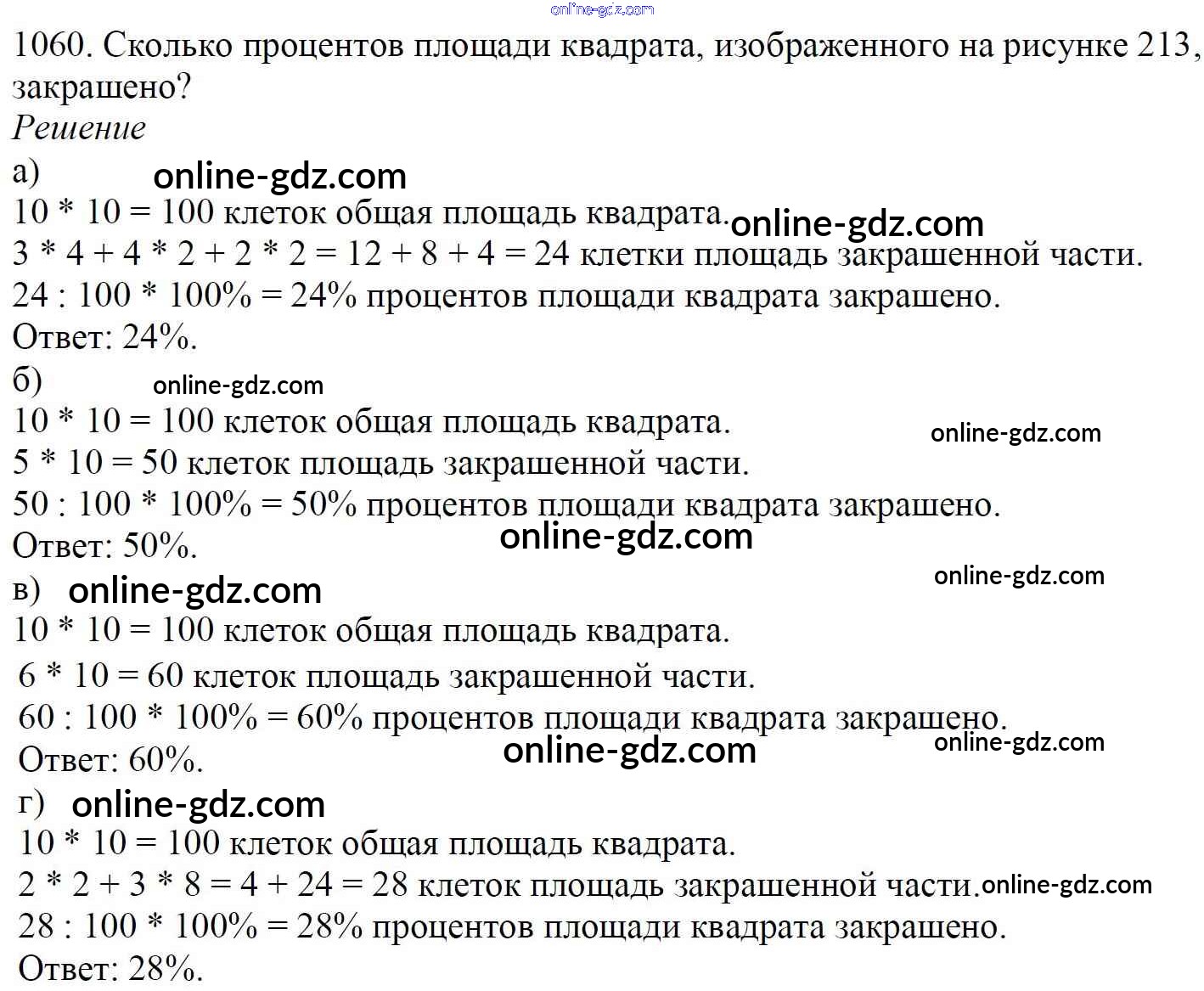 Готовые домашние задания по Математике за 5 класс Учебник Мерзляк, Полонский Алгоритм успеха 2016 - §37. Проценты. Нахождение процентов от числа Глава 5. Десятичные дроби 1060
