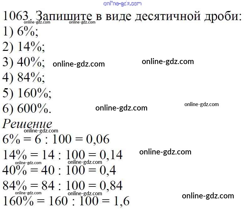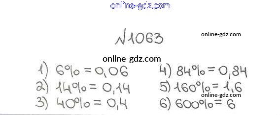 Готовые домашние задания по Математике за 5 класс Учебник Мерзляк, Полонский Алгоритм успеха 2016 - §37. Проценты. Нахождение процентов от числа Глава 5. Десятичные дроби 1063