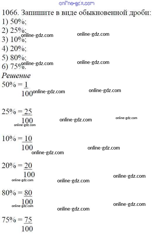 Готовые домашние задания по Математике за 5 класс Учебник Мерзляк, Полонский Алгоритм успеха 2016 - §37. Проценты. Нахождение процентов от числа Глава 5. Десятичные дроби 1066