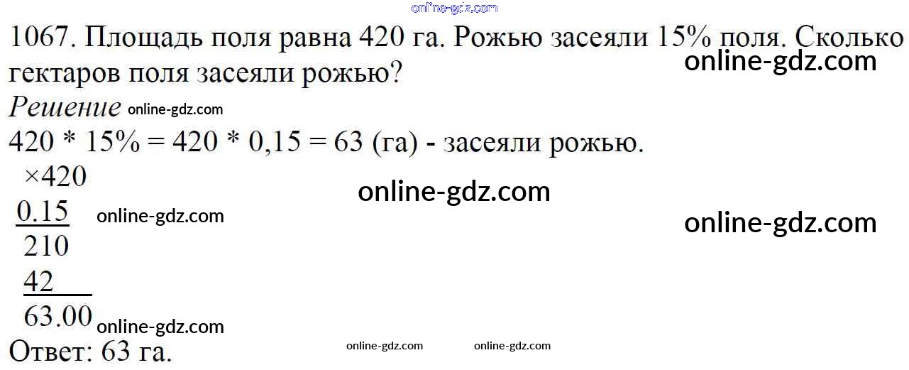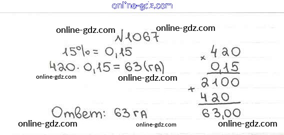 Готовые домашние задания по Математике за 5 класс Учебник Мерзляк, Полонский Алгоритм успеха 2016 - §37. Проценты. Нахождение процентов от числа Глава 5. Десятичные дроби 1067