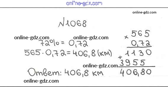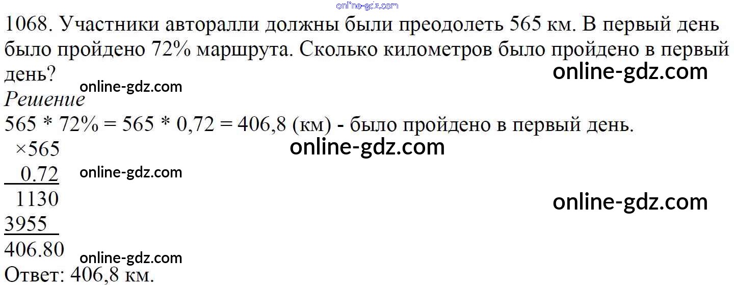Готовые домашние задания по Математике за 5 класс Учебник Мерзляк, Полонский Алгоритм успеха 2016 - §37. Проценты. Нахождение процентов от числа Глава 5. Десятичные дроби 1068