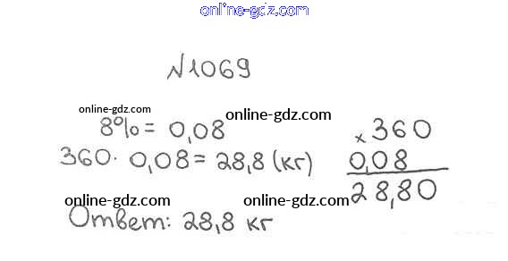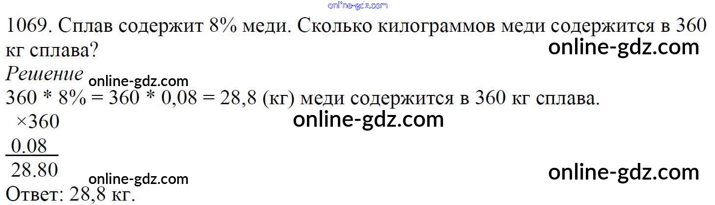 Готовые домашние задания по Математике за 5 класс Учебник Мерзляк, Полонский Алгоритм успеха 2016 - §37. Проценты. Нахождение процентов от числа Глава 5. Десятичные дроби 1069