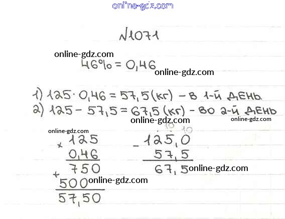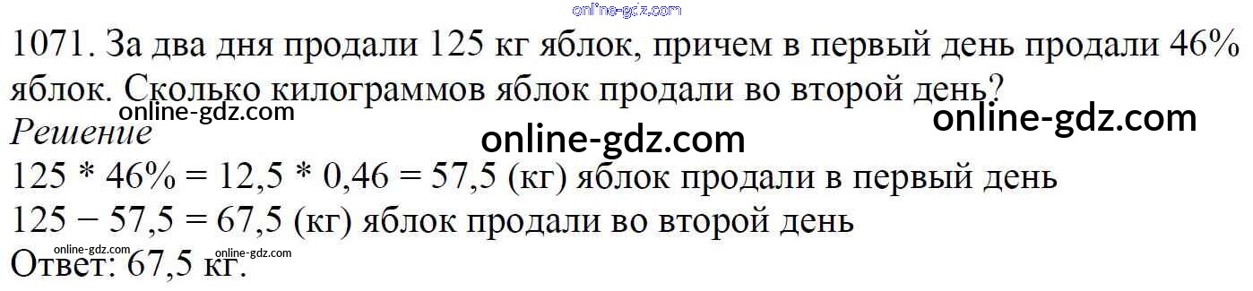 Готовые домашние задания по Математике за 5 класс Учебник Мерзляк, Полонский Алгоритм успеха 2016 - §37. Проценты. Нахождение процентов от числа Глава 5. Десятичные дроби 1071