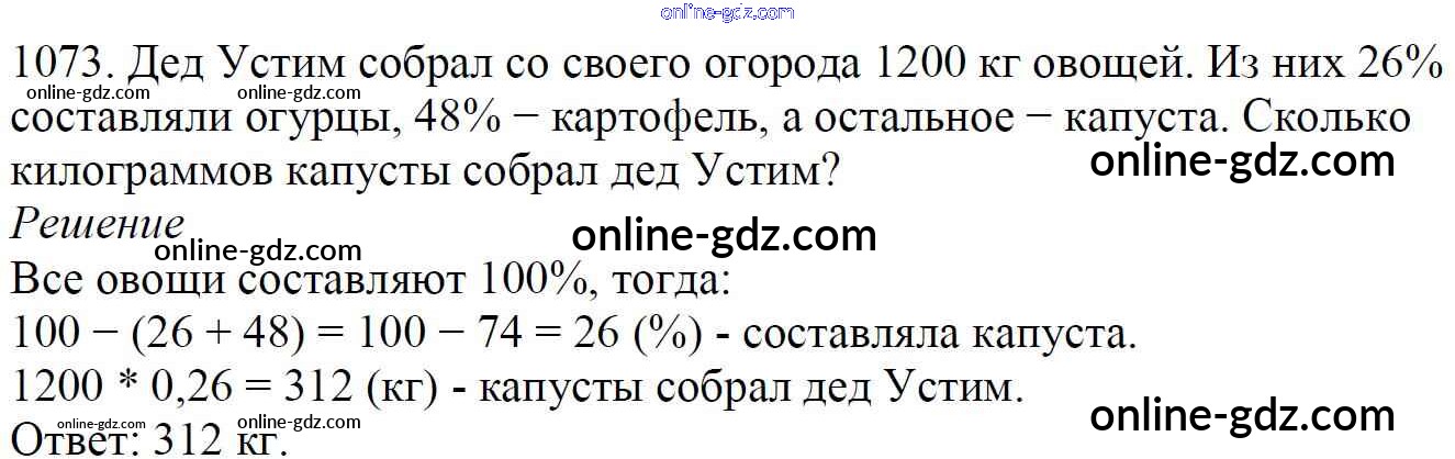 Готовые домашние задания по Математике за 5 класс Учебник Мерзляк, Полонский Алгоритм успеха 2016 - §37. Проценты. Нахождение процентов от числа Глава 5. Десятичные дроби 1073
