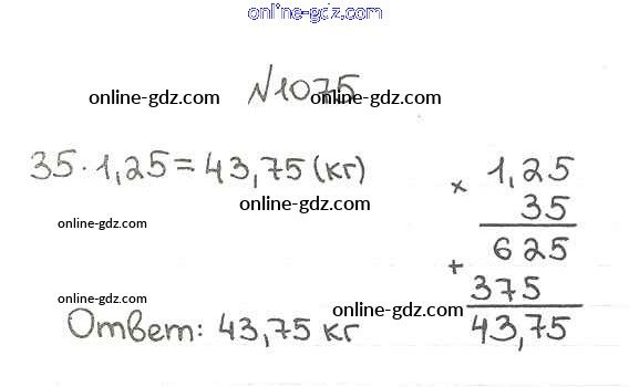 Готовые домашние задания по Математике за 5 класс Учебник Мерзляк, Полонский Алгоритм успеха 2016 - §37. Проценты. Нахождение процентов от числа Глава 5. Десятичные дроби 1075