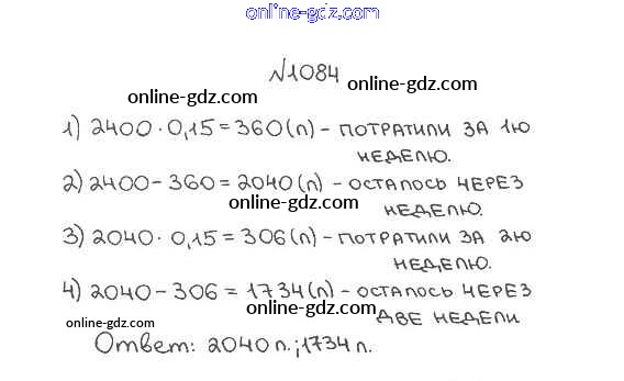 Готовые домашние задания по Математике за 5 класс Учебник Мерзляк, Полонский Алгоритм успеха 2016 - §37. Проценты. Нахождение процентов от числа Глава 5. Десятичные дроби 1084