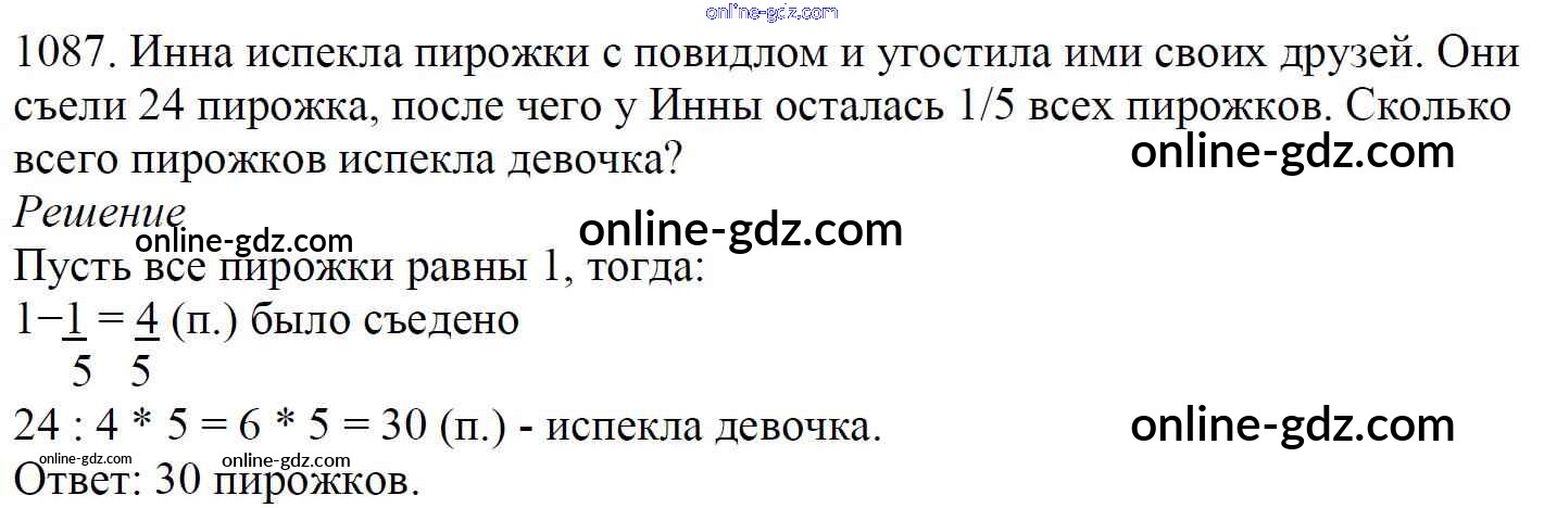 Готовые домашние задания по Математике за 5 класс Учебник Мерзляк, Полонский Алгоритм успеха 2016 - §37. Проценты. Нахождение процентов от числа Глава 5. Десятичные дроби 1087