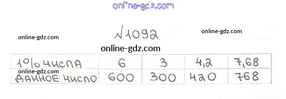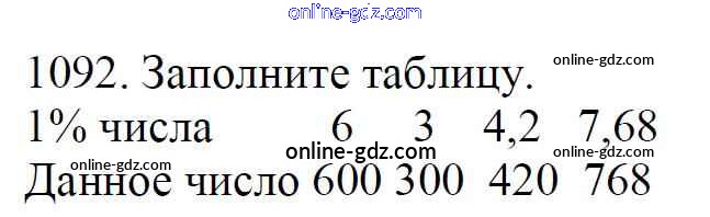 Готовые домашние задания по Математике за 5 класс Учебник Мерзляк, Полонский Алгоритм успеха 2016 - §38. Нахождение числа по его процентам Глава 5. Десятичные дроби 1092