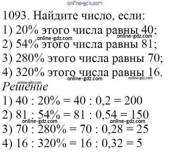 Готовые домашние задания по Математике за 5 класс Учебник Мерзляк, Полонский Алгоритм успеха 2016 - §38. Нахождение числа по его процентам Глава 5. Десятичные дроби 1093