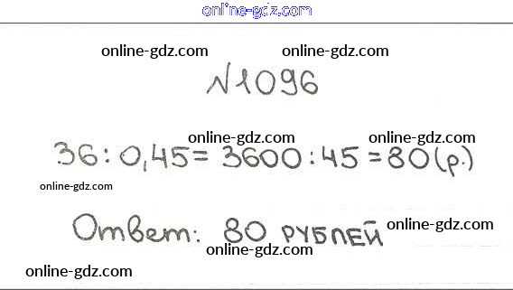 Готовые домашние задания по Математике за 5 класс Учебник Мерзляк, Полонский Алгоритм успеха 2016 - §38. Нахождение числа по его процентам Глава 5. Десятичные дроби 1096