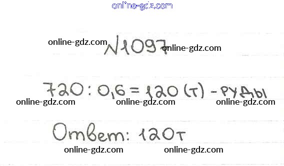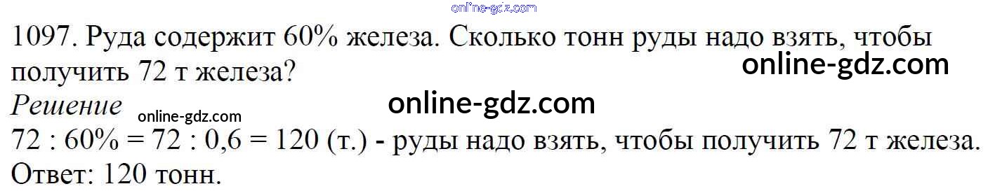 Готовые домашние задания по Математике за 5 класс Учебник Мерзляк, Полонский Алгоритм успеха 2016 - §38. Нахождение числа по его процентам Глава 5. Десятичные дроби 1097