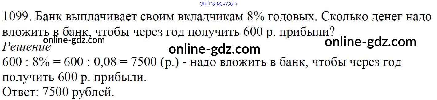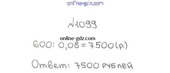 Готовые домашние задания по Математике за 5 класс Учебник Мерзляк, Полонский Алгоритм успеха 2016 - §38. Нахождение числа по его процентам Глава 5. Десятичные дроби 1099