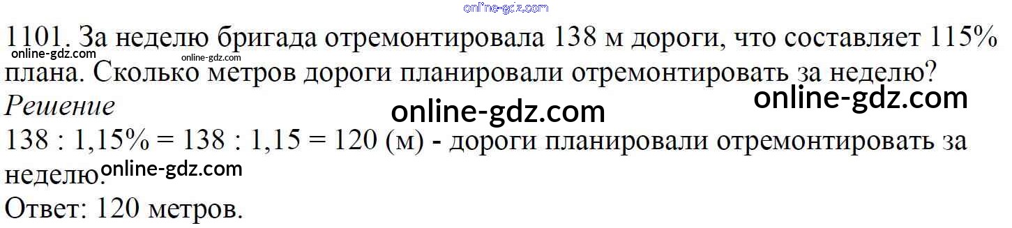 Готовые домашние задания по Математике за 5 класс Учебник Мерзляк, Полонский Алгоритм успеха 2016 - §38. Нахождение числа по его процентам Глава 5. Десятичные дроби 1101