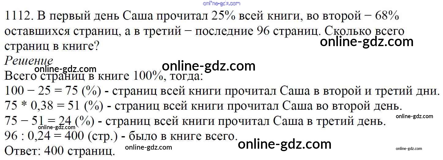 Готовые домашние задания по Математике за 5 класс Учебник Мерзляк, Полонский Алгоритм успеха 2016 - §38. Нахождение числа по его процентам Глава 5. Десятичные дроби 1112