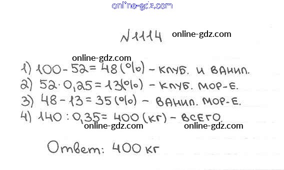 Готовые домашние задания по Математике за 5 класс Учебник Мерзляк, Полонский Алгоритм успеха 2016 - §38. Нахождение числа по его процентам Глава 5. Десятичные дроби 1114