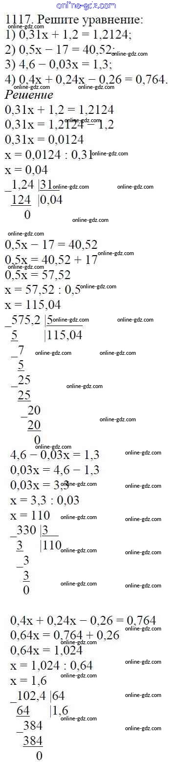 Готовые домашние задания по Математике за 5 класс Учебник Мерзляк, Полонский Алгоритм успеха 2016 - §38. Нахождение числа по его процентам Глава 5. Десятичные дроби 1117