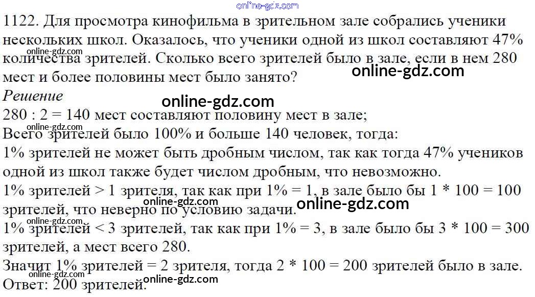 Готовые домашние задания по Математике за 5 класс Учебник Мерзляк, Полонский Алгоритм успеха 2016 - §38. Нахождение числа по его процентам Глава 5. Десятичные дроби 1122