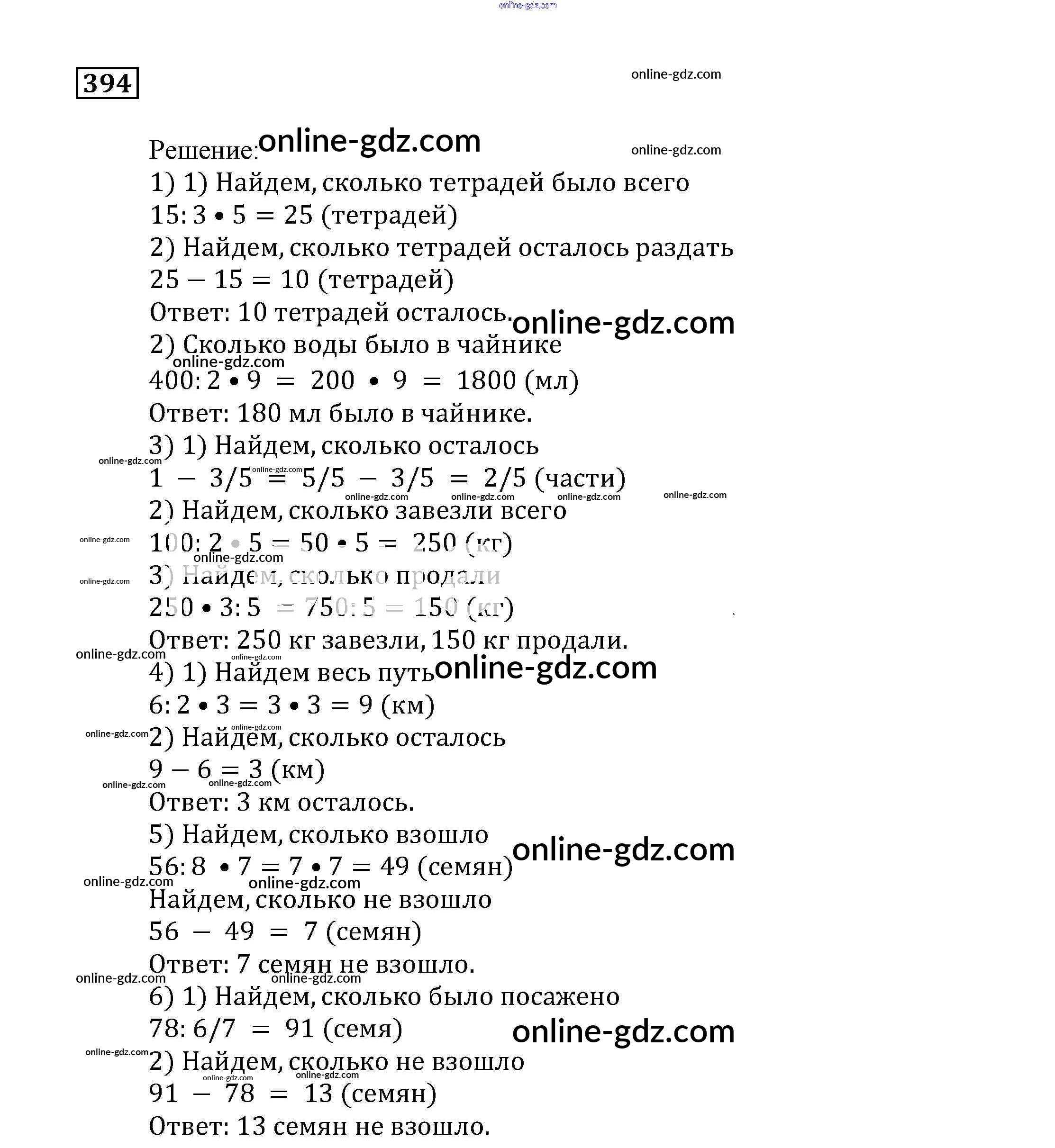 Готовые домашние задания по Математике за 5 класс Учебник Муравин, Муравина 2016 - Упражнения 394