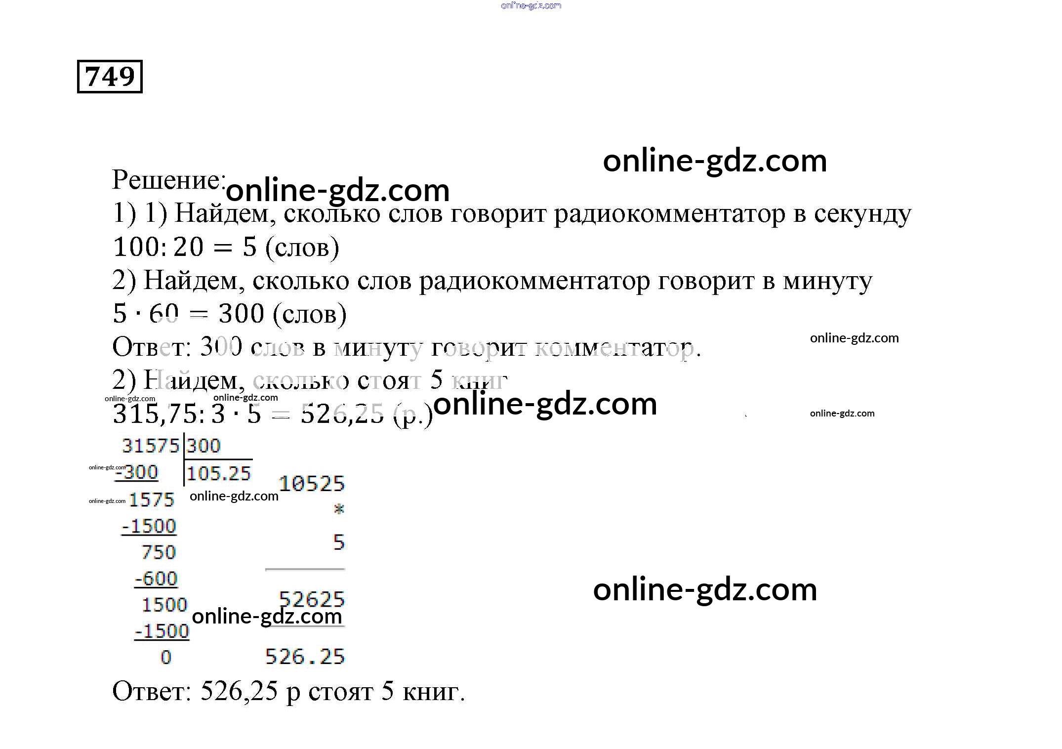 Готовые домашние задания по Математике за 5 класс Учебник Муравин, Муравина 2016 - Упражнения 749