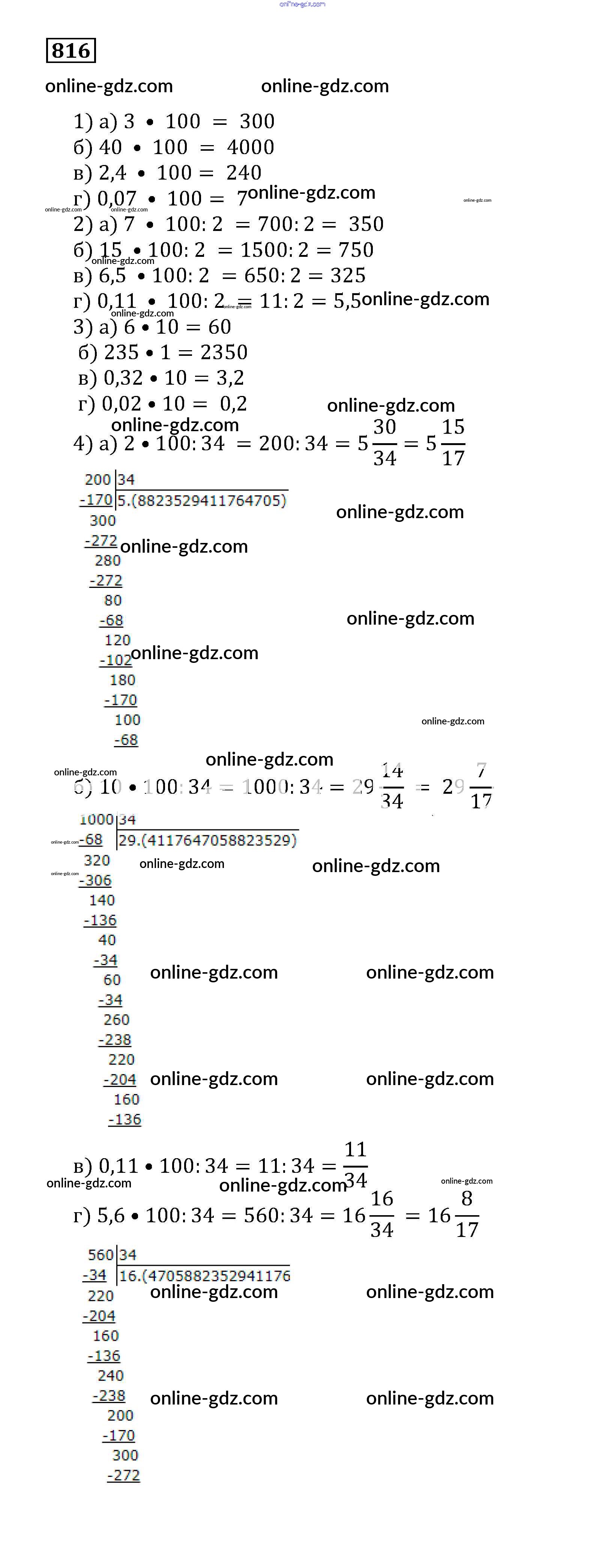 Готовые домашние задания по Математике за 5 класс Учебник Муравин, Муравина 2016 - Упражнения 816