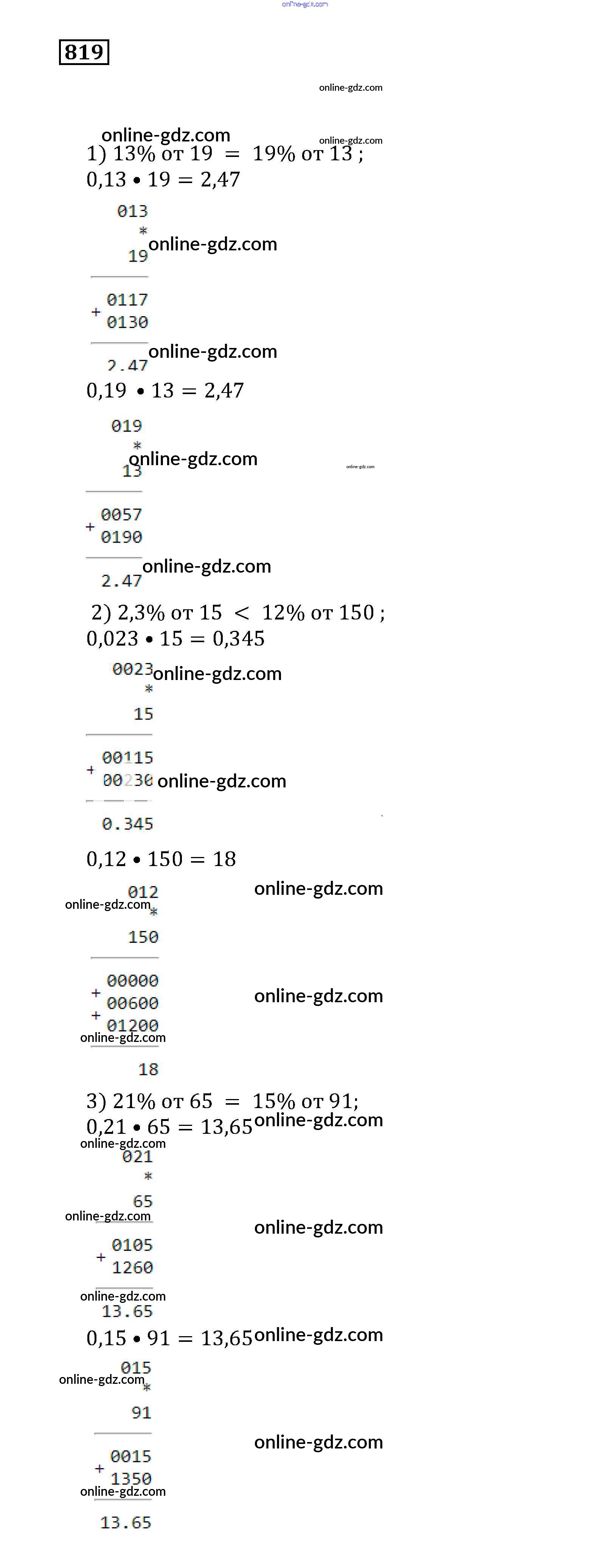 Готовые домашние задания по Математике за 5 класс Учебник Муравин, Муравина 2016 - Упражнения 819
