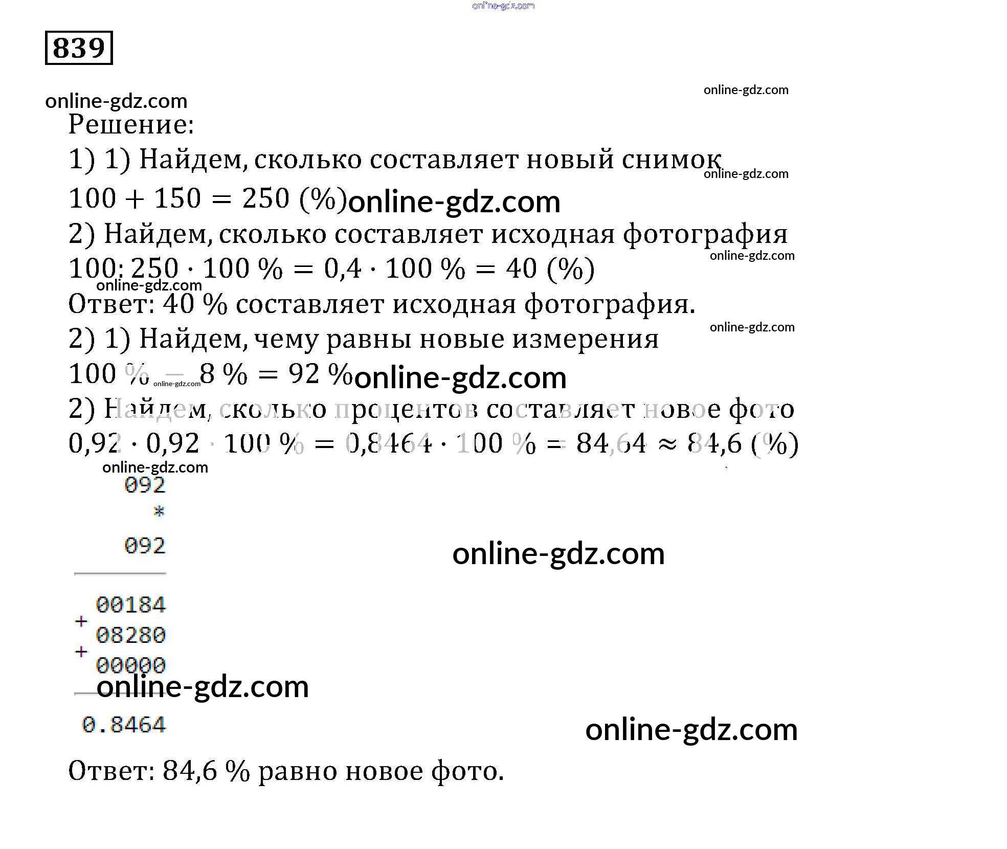 Готовые домашние задания по Математике за 5 класс Учебник Муравин, Муравина 2016 - Упражнения 839