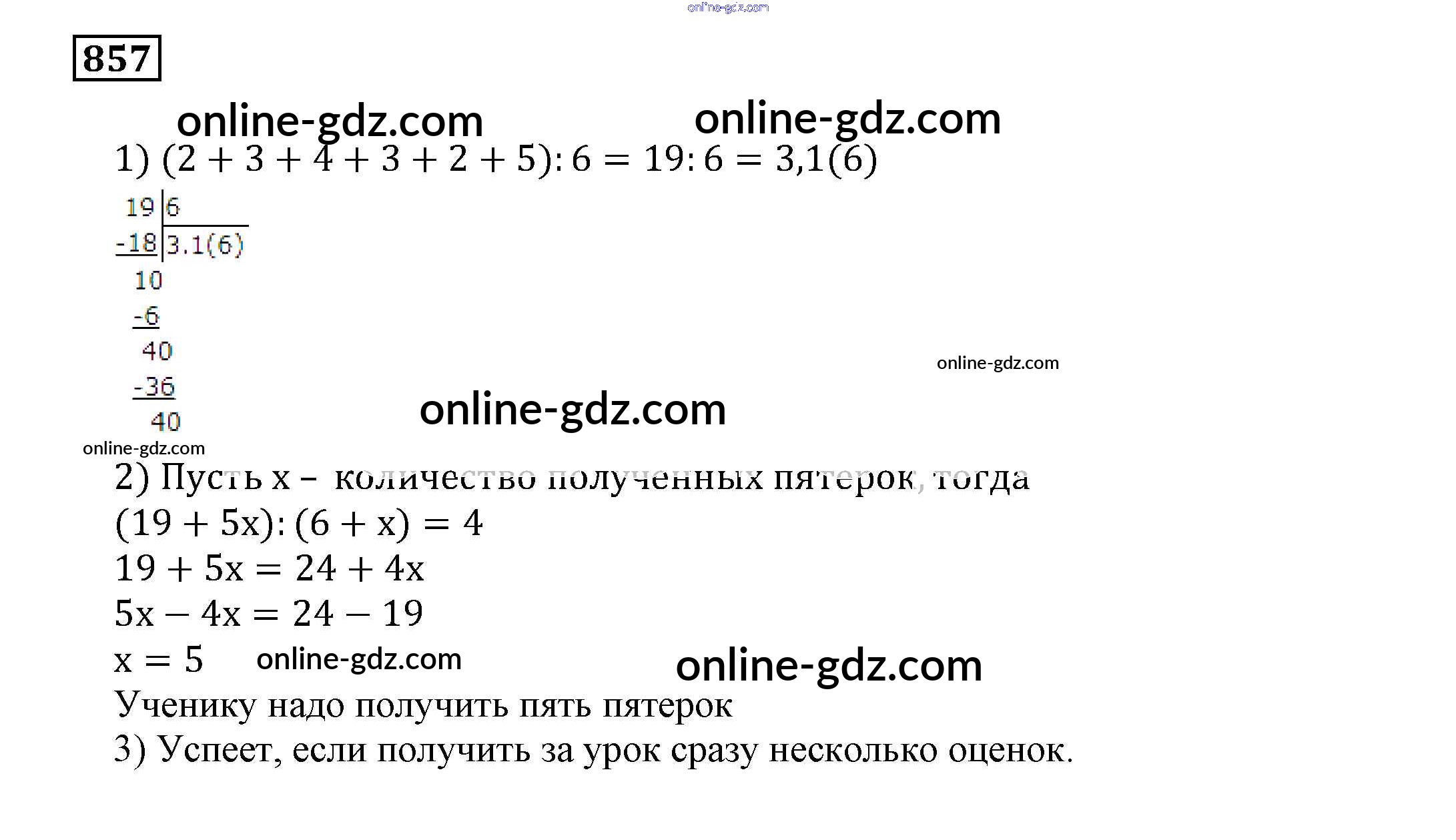 Готовые домашние задания по Математике за 5 класс Учебник Муравин, Муравина 2016 - Упражнения 857
