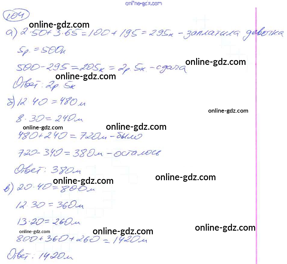 Готовые домашние задания по Математике за 5 класс Учебник Никольский, Потапов МГУ - школе 2016 - Упражнения 104