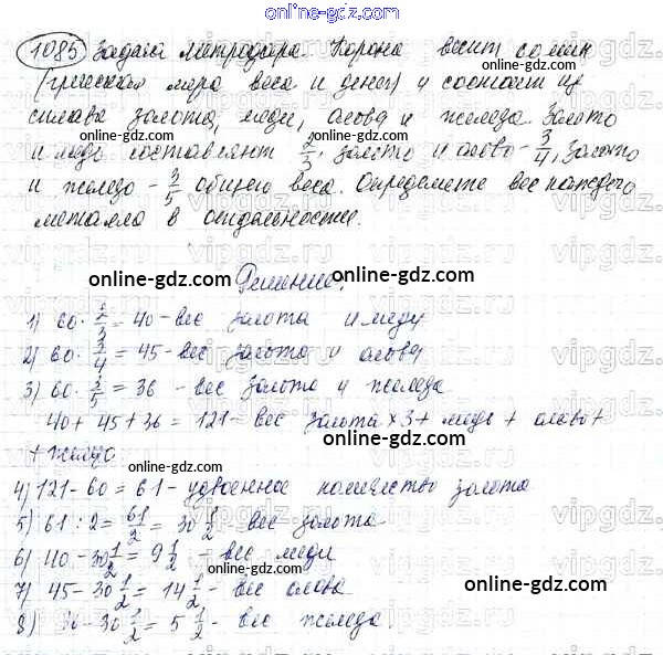 Готовые домашние задания по Математике за 5 класс Учебник Никольский, Потапов МГУ - школе 2016 - Упражнения 1085