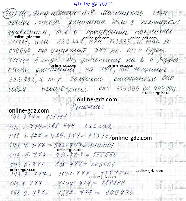 Готовые домашние задания по Математике за 5 класс Учебник Никольский, Потапов МГУ - школе 2016 - Упражнения 151