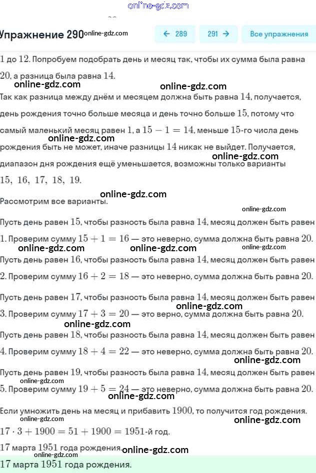 Готовые домашние задания по Математике за 5 класс Учебник Никольский, Потапов МГУ - школе 2016 - Упражнения 290